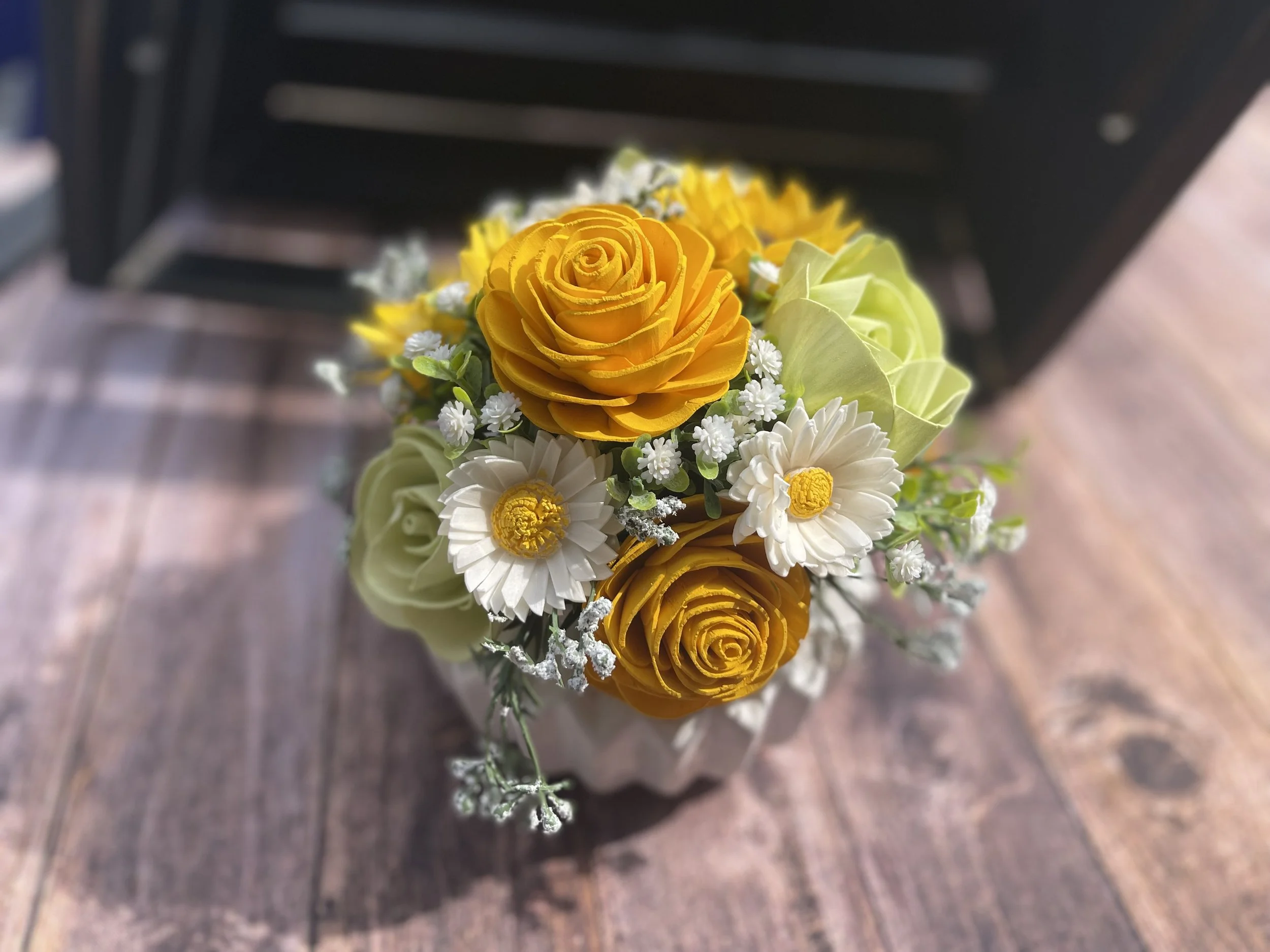 At Yours Truly Florals we work closely with our brides to make their wedding floral dreams come true. The great thing about working with WOOD flowers is that our flowers are custom dyed, so you get to pick out your specific colors to match your vision.